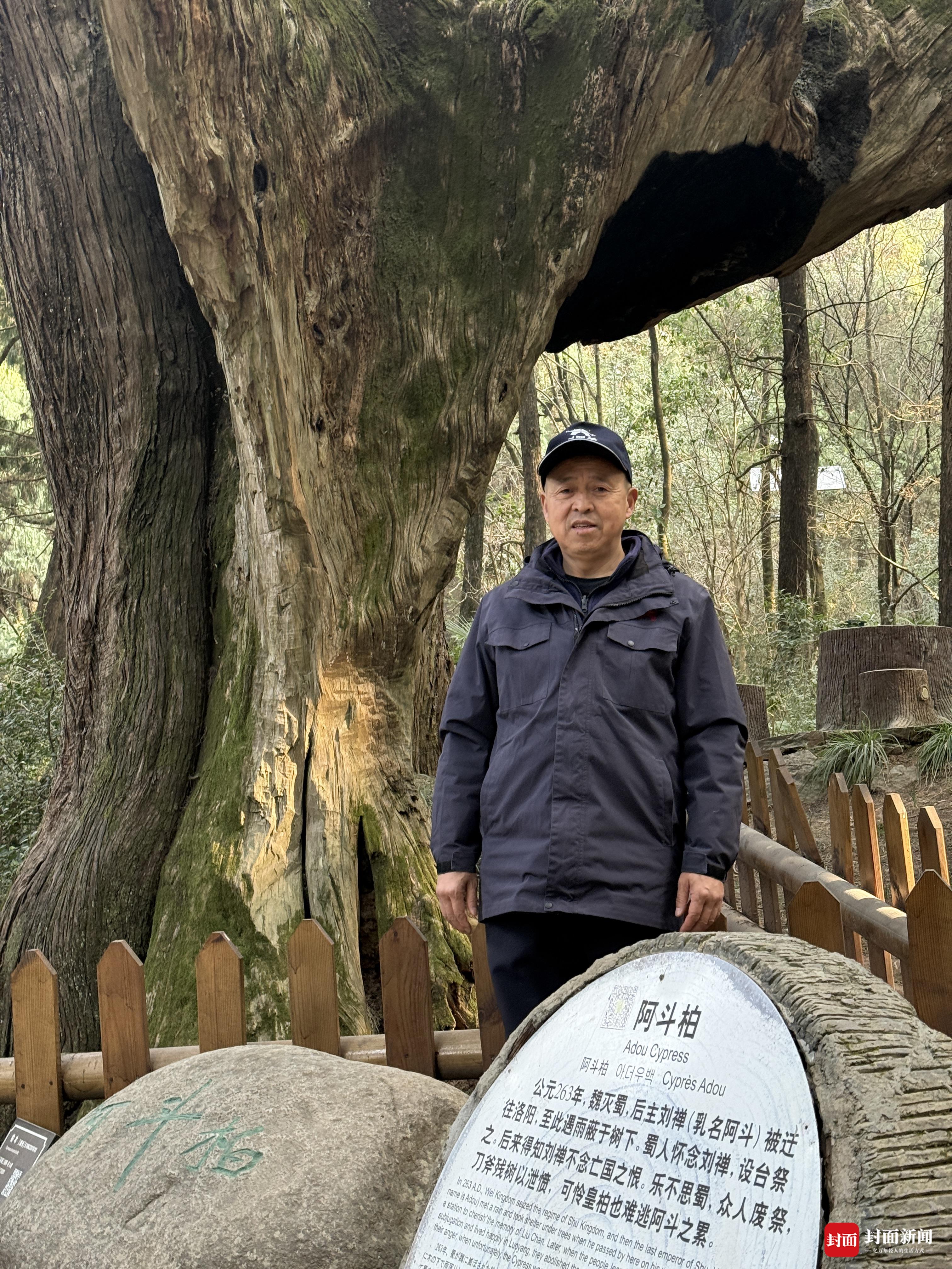 走到景区中段,刘高华停驻来,指着路边一棵倾斜的古柏,眼睛亮了一下。“这棵,我最喜欢。”
