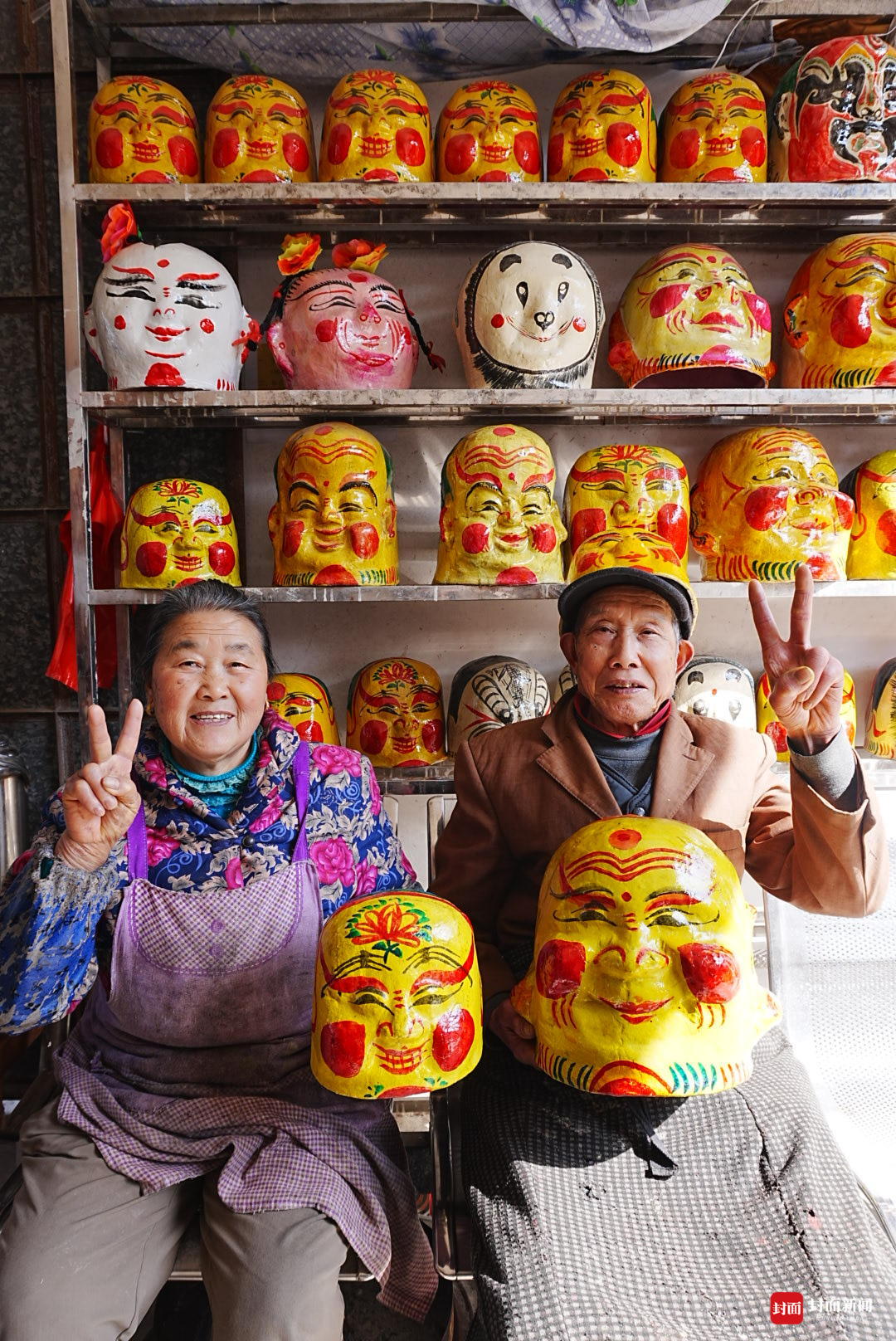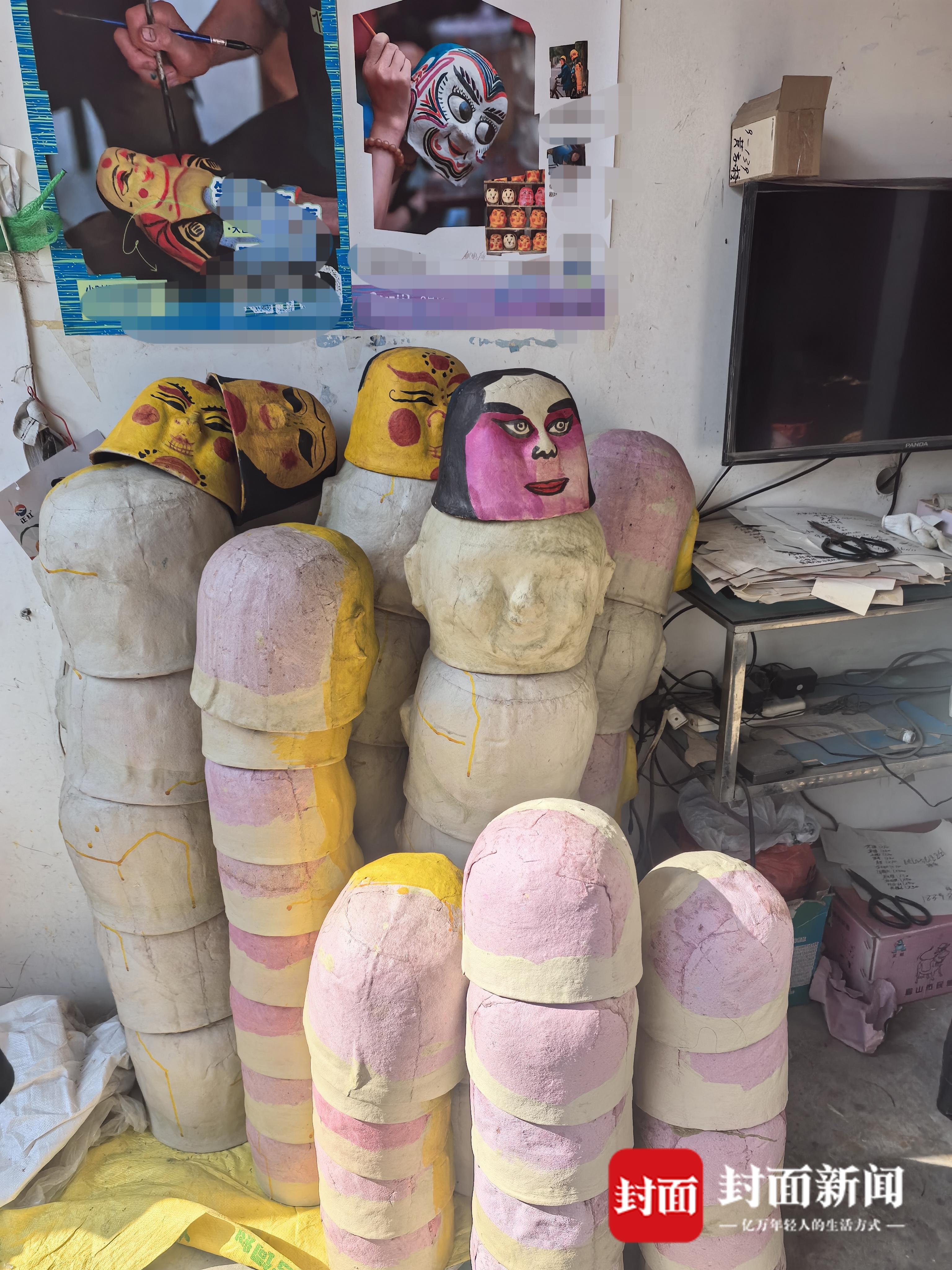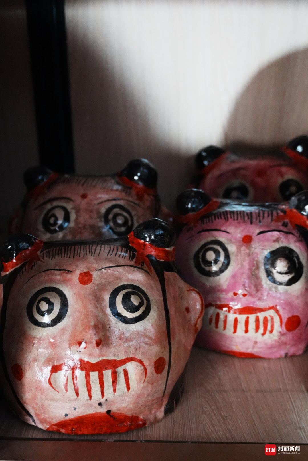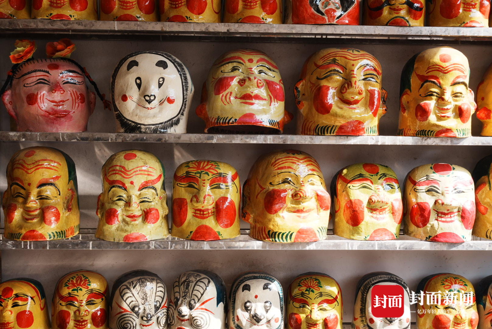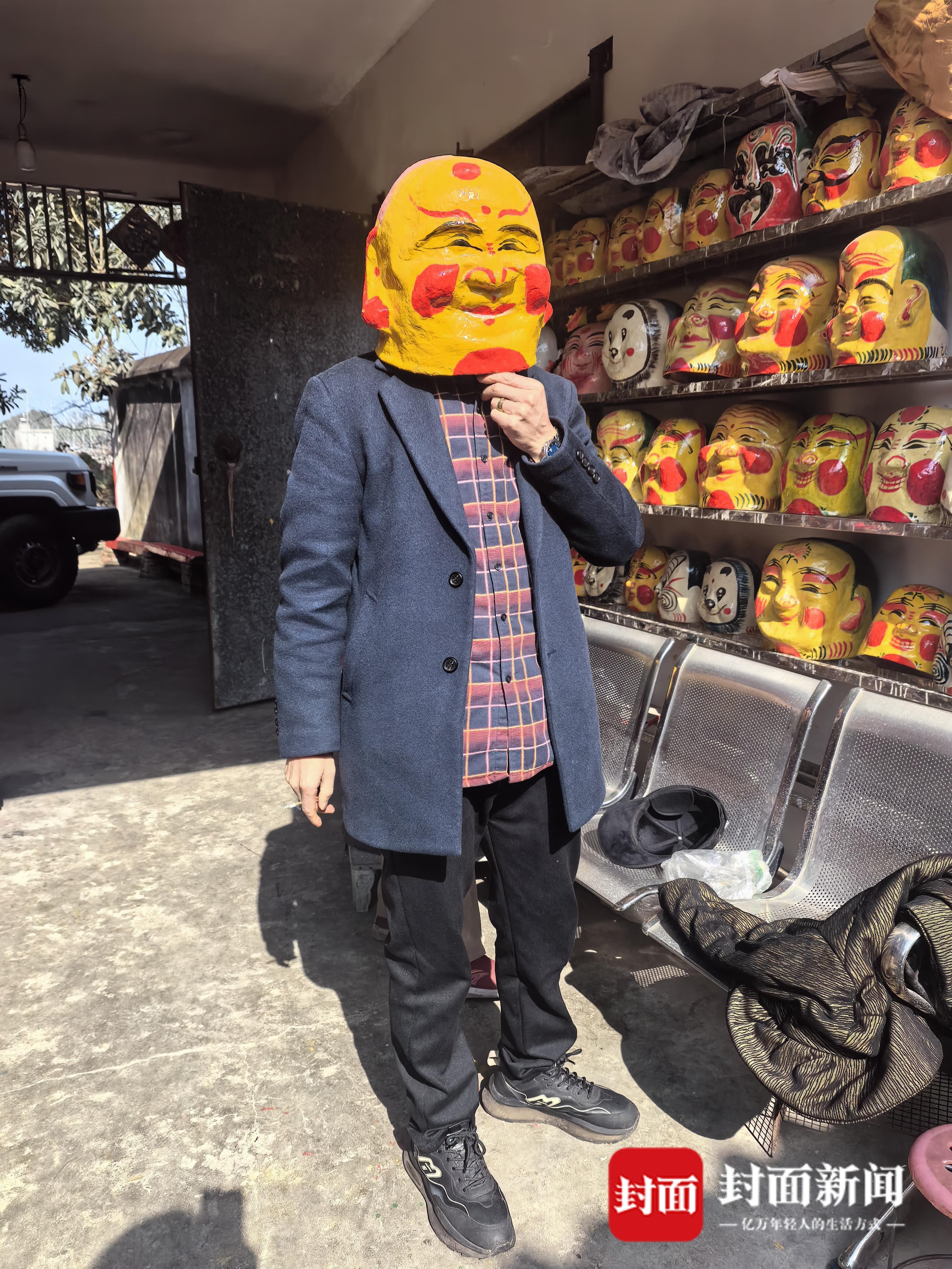 2月10日,朔方小年,封面新闻记者推开大邑县王泗镇黄家榜老屋的木门,一房子憨态可掬的“笑头梵衲”面具,猝不足防映入眼帘。