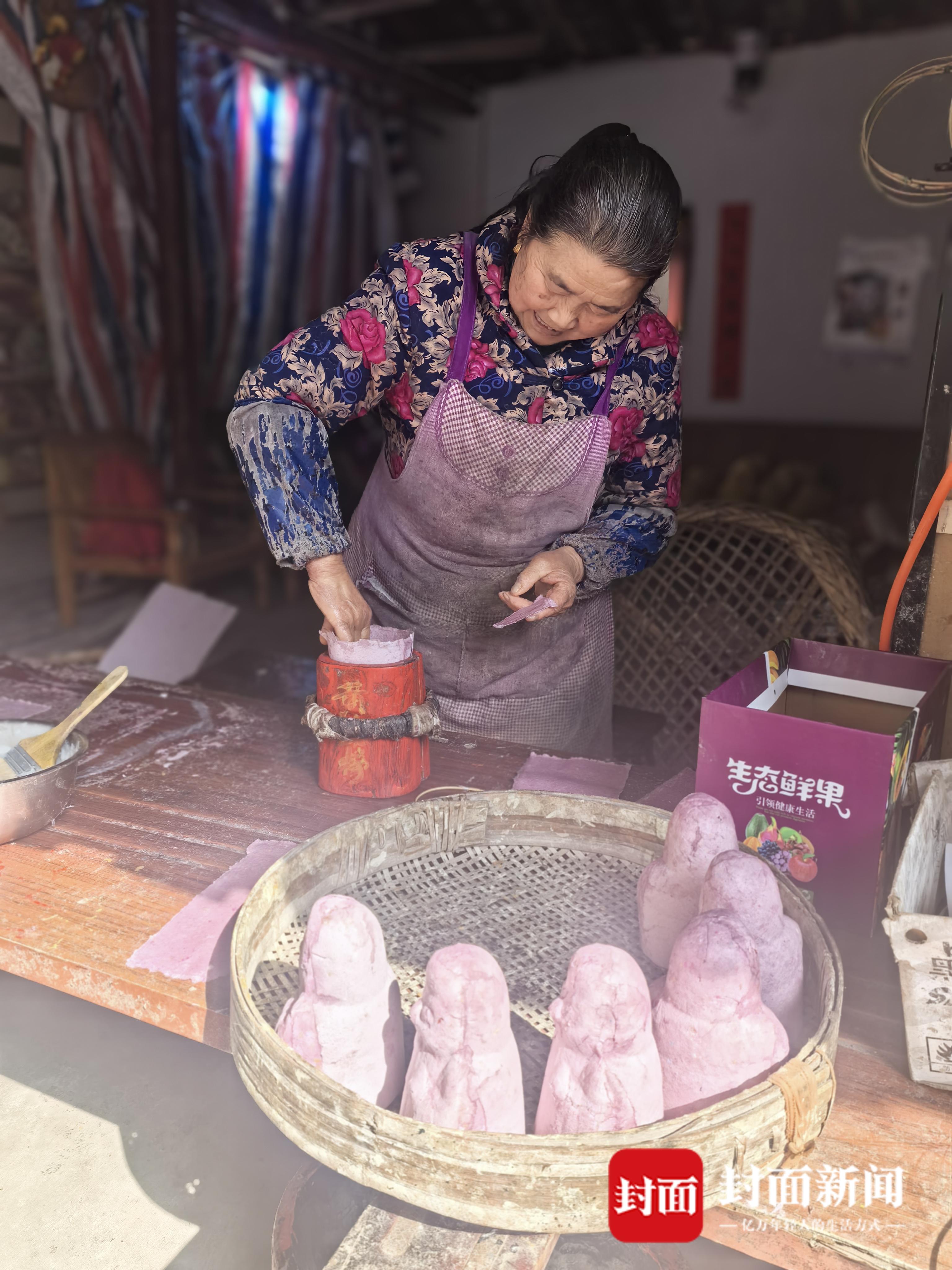 陈奶奶在制作笑头梵衲面具